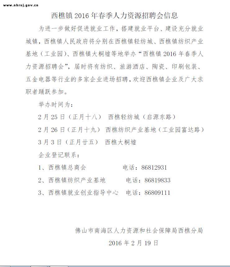 西樵地区的招聘信息是一个宝贵的资源,我们应该充分利用和发挥其价值,为社会发展贡献力量,希望通过本文的论述,能引起更多人关注西樵招聘信息,共同为创造更好的就业环境努力,在此基础上,我们还需要关注招聘市场的动态变化,及时采取措施解决可能出现的问题。